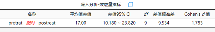 (2) 使用Cohen’s d 值表示效应量大小(差异幅度大小),该值越大说明差异越大;