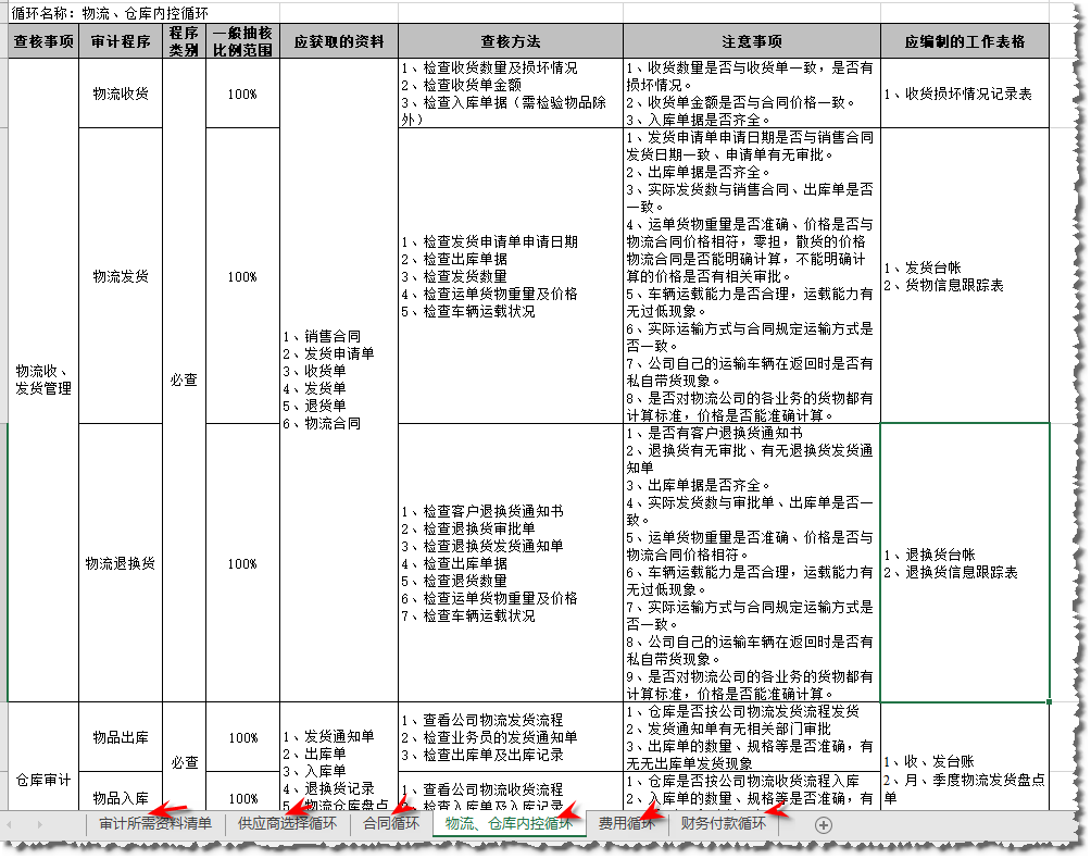 物流项目审计:审计计划+审计底稿+物流舞弊要点及审计关键点