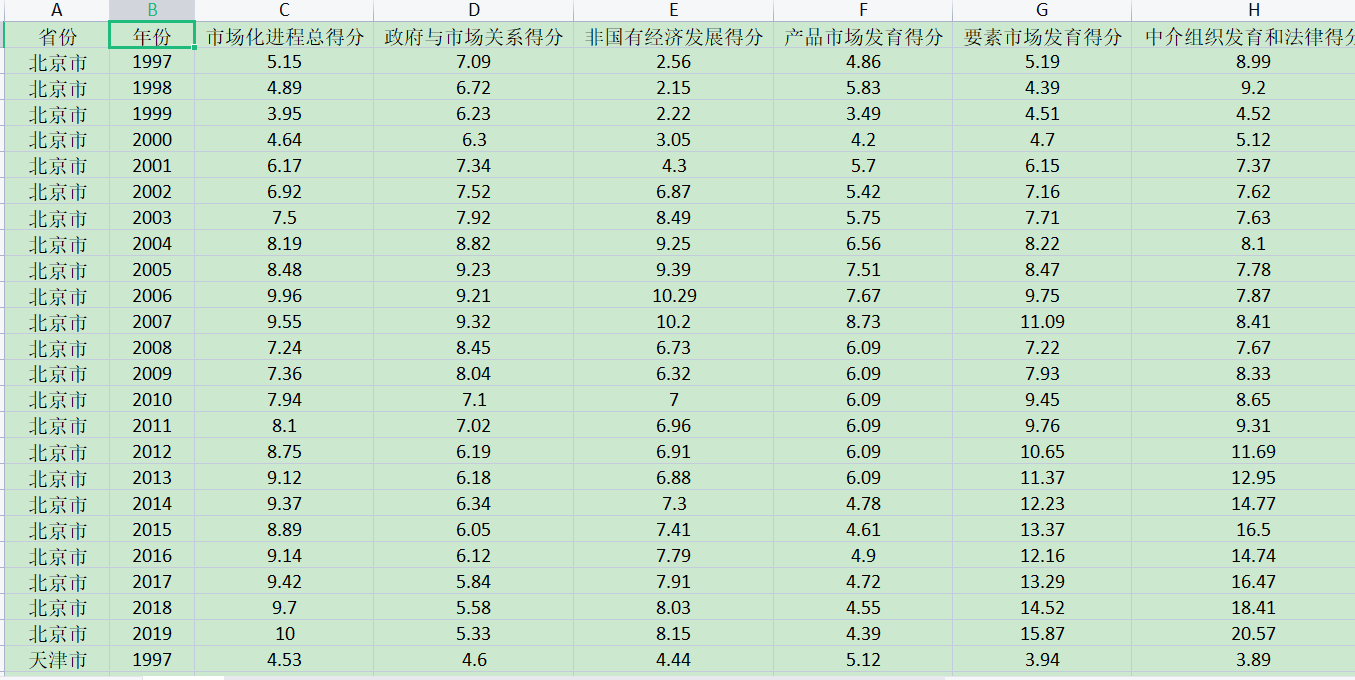 1997-2019中国31个省区市市场化指数期权数据