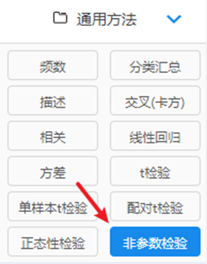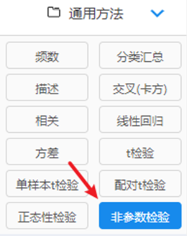 (1)点击SPSSAU通用方法里面的‘非参数检验’按钮。如下图: