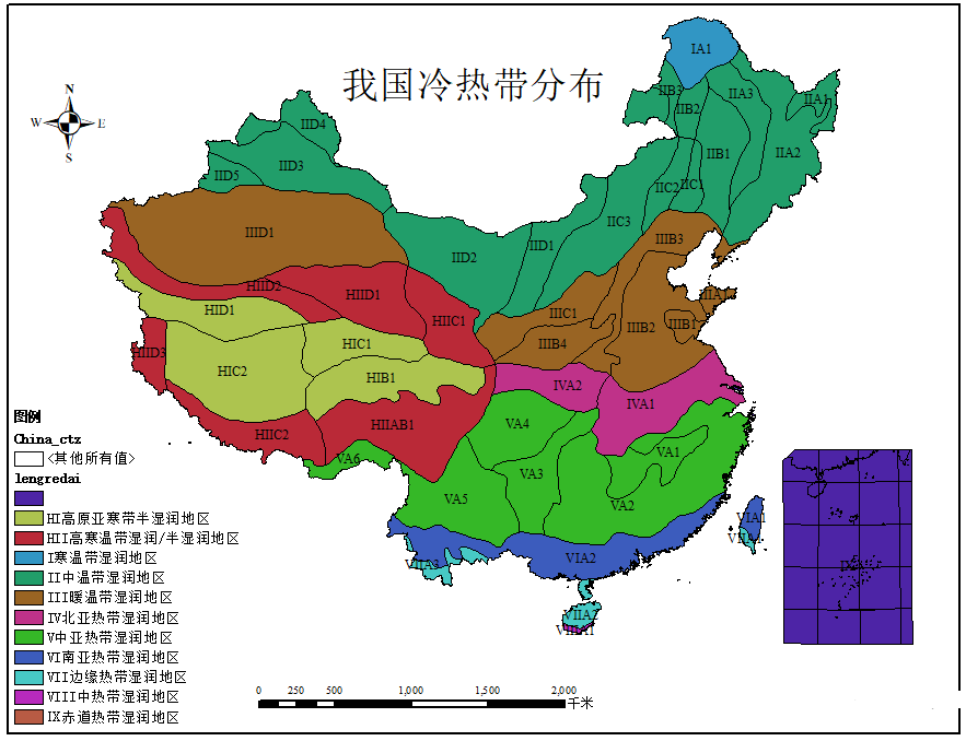 主要包括高原亚寒带半湿润地区、寒温带湿润地区、中温带湿润地区、南亚热带湿润地区等。双击“我国冷热带分布.mxd”,利用ArcMap打开。