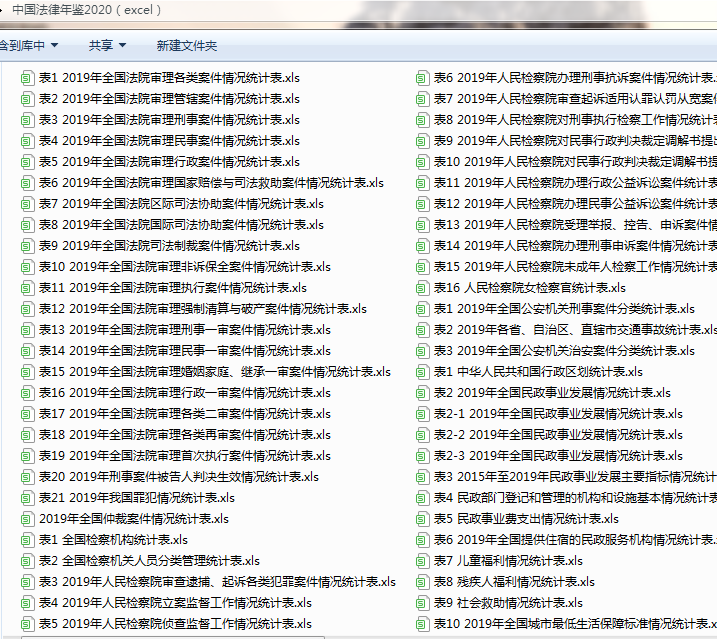 中国法律年鉴2017--2020(excel格式)【excel格式均为统计资料部分】