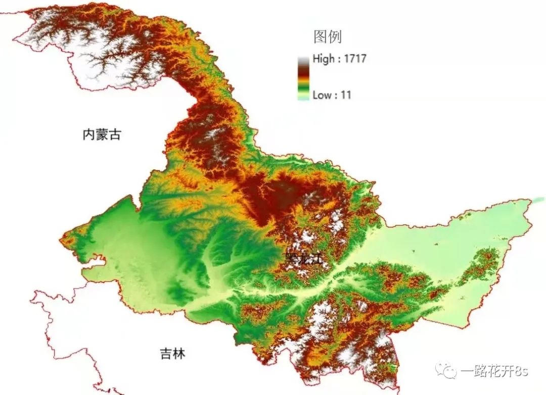 黑龙江地区NASA全球数据高程模型DEM地形数据shp 及 ASTER GDEM 30米精度30mtif文件格式