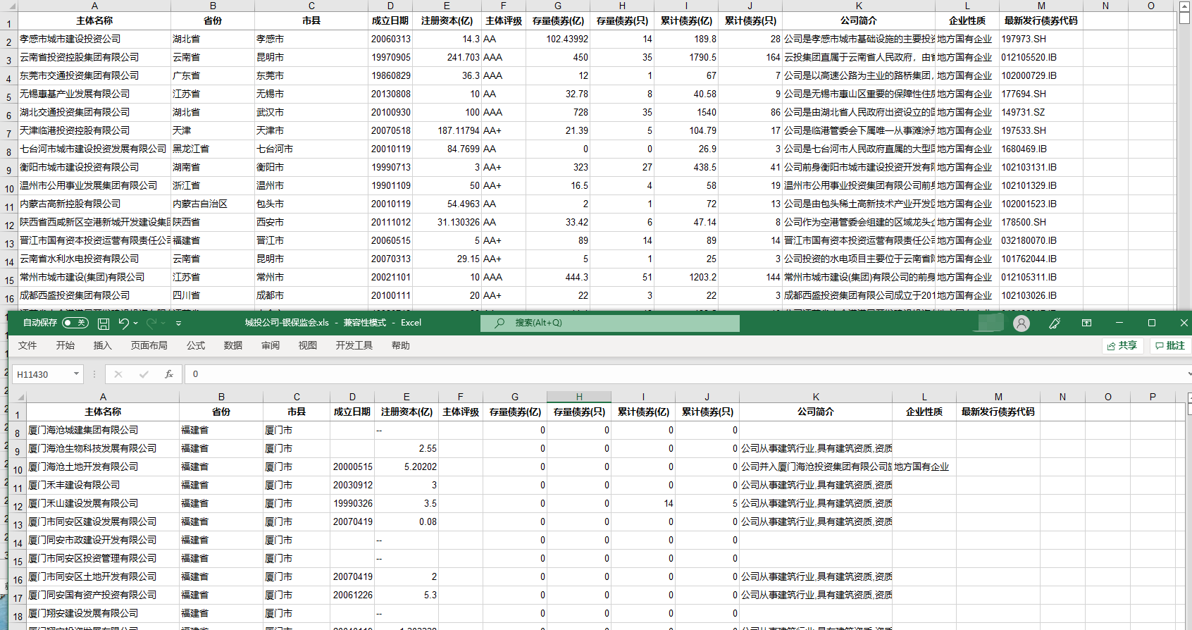 1999-2020年各省市近3万只城投债发行资料以及2800多家城投公司/城投平台