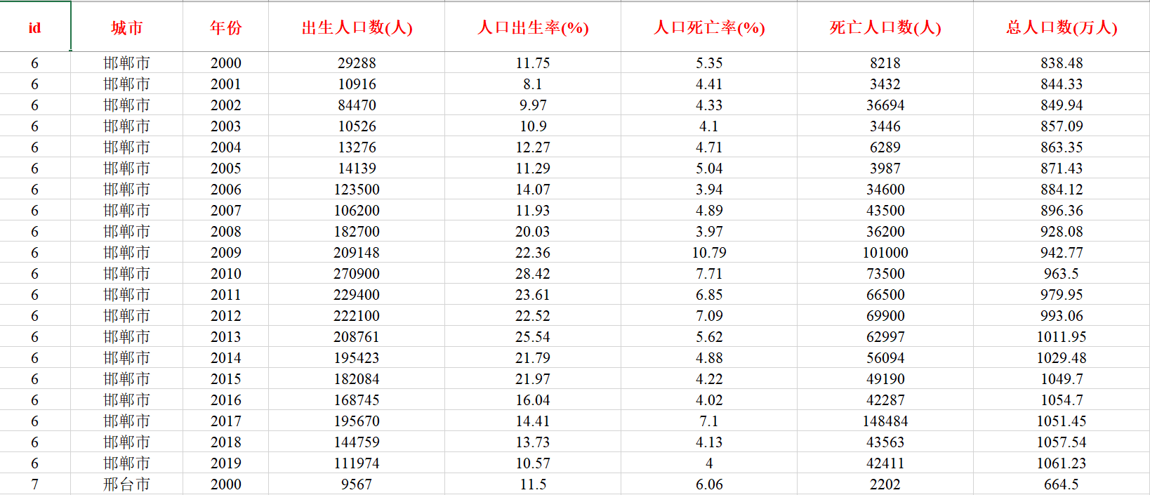2000-2019年中国各县区\各城市人口、出生率和死亡率数据,样本时间新,数据量大,基本可以满足毕业论文写作和科研需求。数据真实可靠,辛苦整理所得,分享给大家,希望对论坛各位同学毕业论文以及论文发表有所帮助。分享这份数据一是为了贴补家用,二是为了共享知识,希望诚心需要的同学下载使用,使用过程中如有任何疑问,可以加q2961096086交流心得。衷心祝愿论坛各位同仁毕业和发文顺利!整理的非常完整,十分规范,排版也很漂亮,节省您大量收集与整理时间,绝对物有所值!