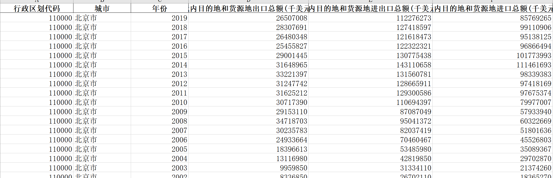 全国各地区-对外贸易相关数据【2000-2019年】
