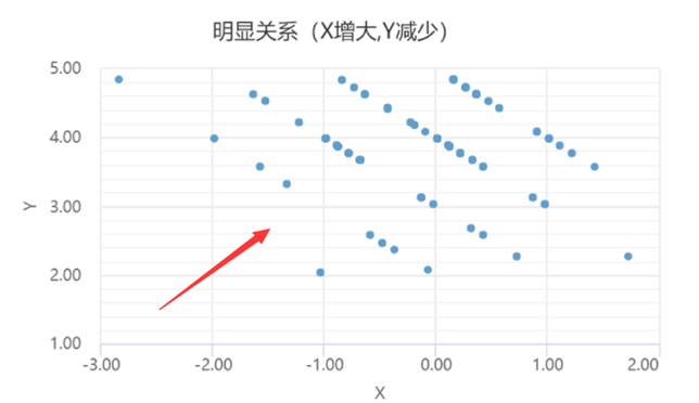 上图可以看出,X增大时,Y会明显的减少,也即说明X和Y之间有着负向相关关系。