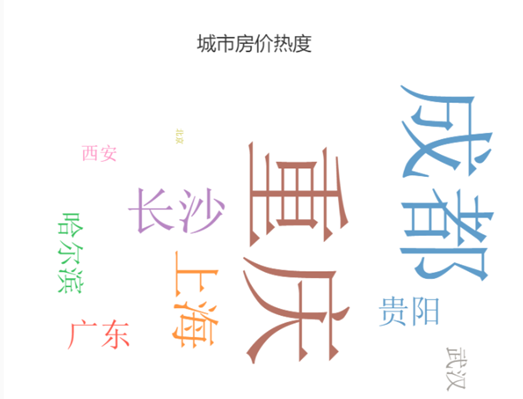 上图中直观展示出房价热度的情况,“深圳”字体最大最明显,直观展示出此信息。