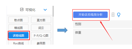 误差线图用于展示数据的不确定性程度,显示潜在的误差或每个数据标志的不确定程度。样本数据的波动是通过标准差体现,因而样本均值不确定性程度为标准差。如果希望体现数据抽样误差,此时应该使用标准误。
