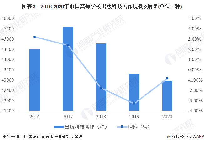 3、高等学校出版科技著作规模下降