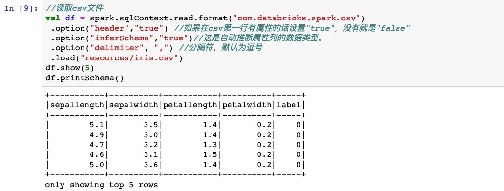 可以读取json文件、csv文件、hive数据表或者mysql数据表得到DataFrame。