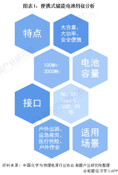 便携式储能电源,简称"户外电源",是一种替代传统小型燃油发电机的、内置锂离子电池的小型储能设备,有大容量、大功率、安全便携的特点,可提供稳定交流/直流电压输出的电源系统,电池容量在100Wh-3000Wh,配有AC、DC、Type-C、USB、PD等多种接口,可匹配市场上主流电子设备,适用于户外出游、应急救灾、医疗抢险、户外作业等多个场景。