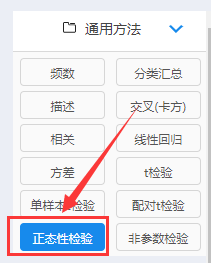 (1)点击SPSSAU通用方法里面的‘正态性检验’按钮。如下图: