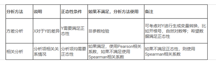 SPSSAU将常见的分析方法正态性特质要求归纳如下表