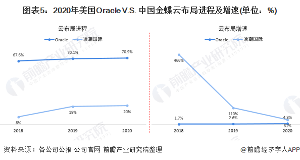 从云化进程来看,2018-2020年,Oracle的云化进程始终高于浪潮国际。2020年,Oracle的云化进程达到了70.9%,而浪潮国际浪潮国际的云化进程为20%。