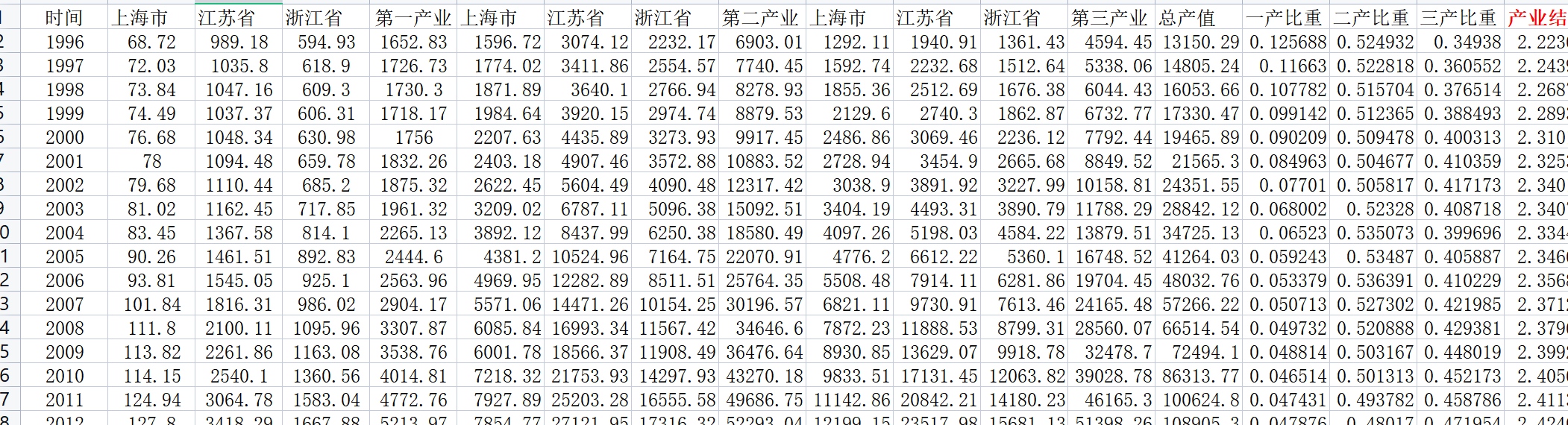 四、徐云德三次产业加权法长三角产业机构水平指数