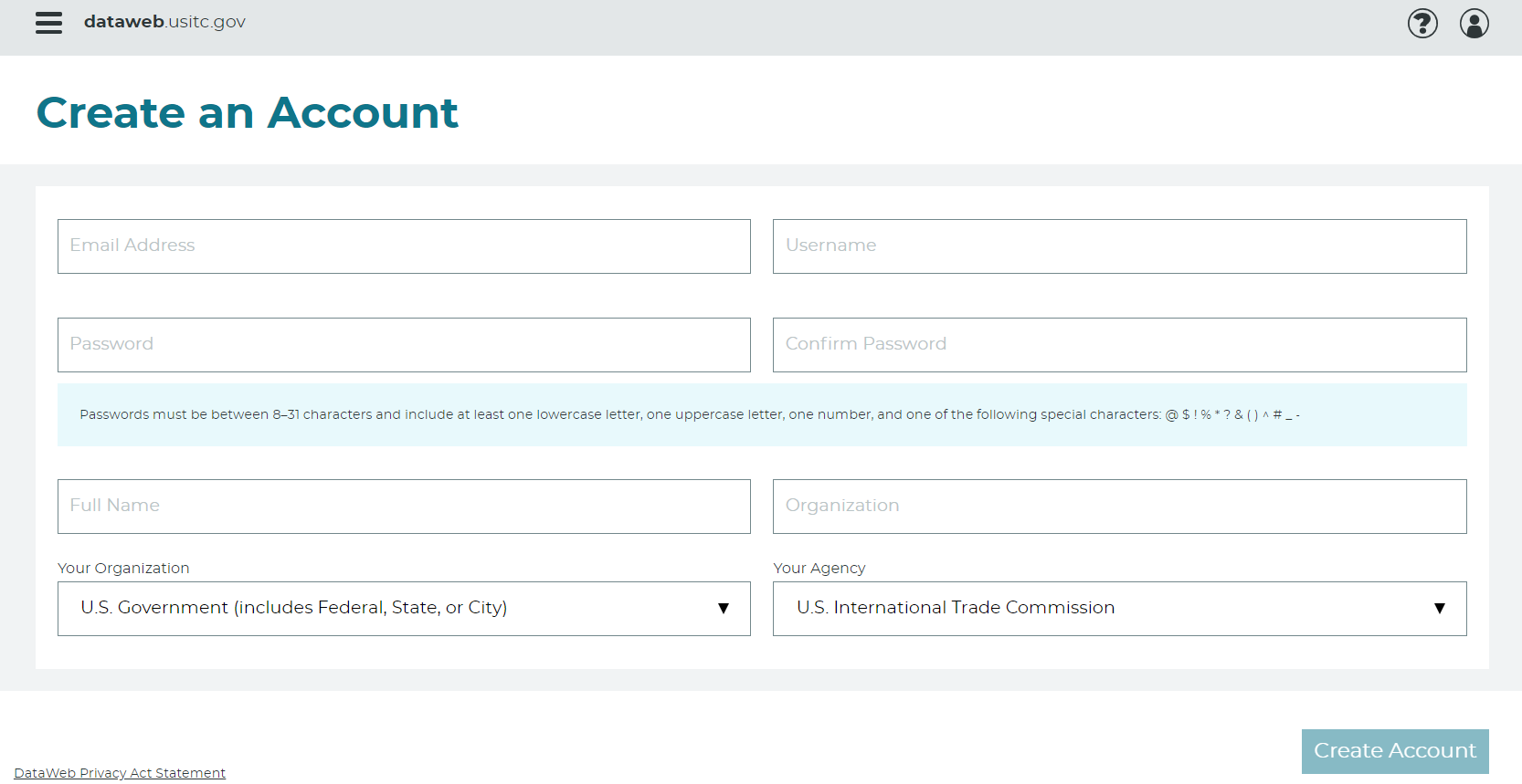 网址:https://dataweb.usitc.gov/my-account