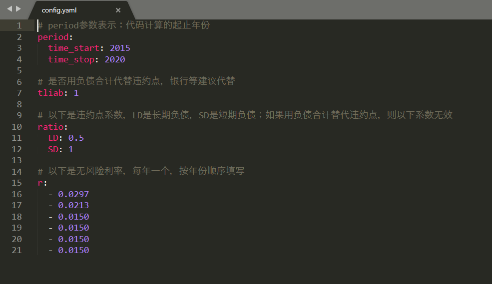 修改好参数后,直接运行kmv_year.py(如果是按季度计算购买季度代码,运行kmv_ss.py)文件,运行后即可得到所有的原始数据、中间变量及计算结果。