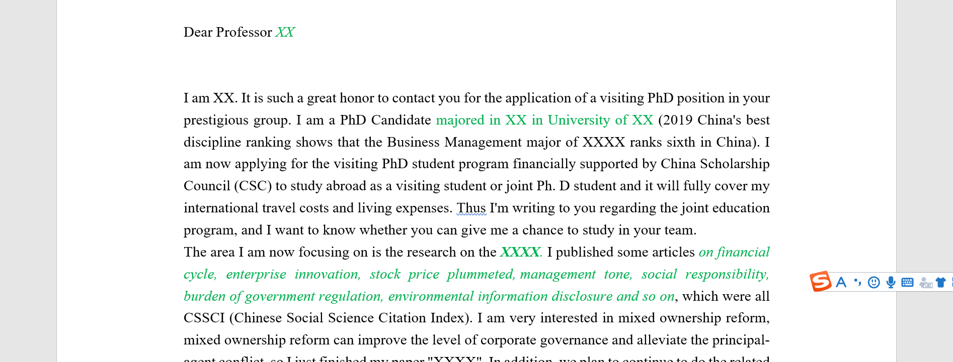附件是楼主本人去年使用的套磁信,按照自我介绍资助、方式介绍、学术背景介绍、表明勤学态度、后续所需材料等顺序写的。里面的逐字逐句都认真修改过。这封套磁信帮我收获了美澳加三个国家的十余位老师的offer。资料整理实属不易,分享本人真实的陶瓷邮件,当时申请CSC时候搜遍全网没有可心的现成的模板,我的这封套磁信绝对不会失望的