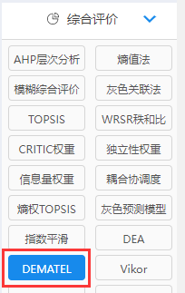 (1)点击SPSSAU综合评价里面的‘DEMATEL’按钮。如下图