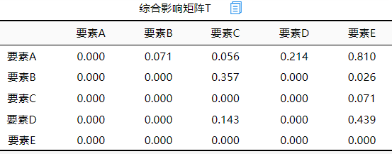 PS:综合影响矩阵T =规范直接影响矩阵 * (单位矩阵-规范直接矩阵)的逆矩阵。