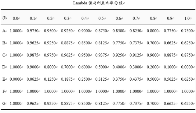 上表格展示不同的lambda值时对应的利益比率Q值,lambda值(决策机制系数),该值为一个‘调节值’,该值介于[0,1]之间,SPSSAU默认是0.5;该值大于0.5表示越偏好效用即最大化利益,其属于风险偏好型;该值小于0.5表示越偏好减少遗憾即风险保守型;该值一般取0.5即中间值。