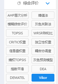 (1)点击SPSSAU综合评价里面的‘VIKOR’按钮。如下图