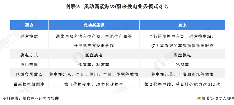 随着政策环境利好,越来越多的市场参与者开始布局和进入“换电”领域,“换电”模式逐渐发力。目前,中国换电站运行的龙头企业分别是奥动新能源、蔚来汽车,两家企业在换电业务上的布局历程如下: