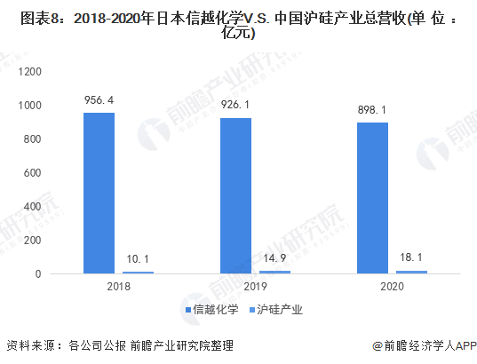 业绩对比:信越化学是沪硅产业的15倍,但沪硅产业逐渐拉近差距