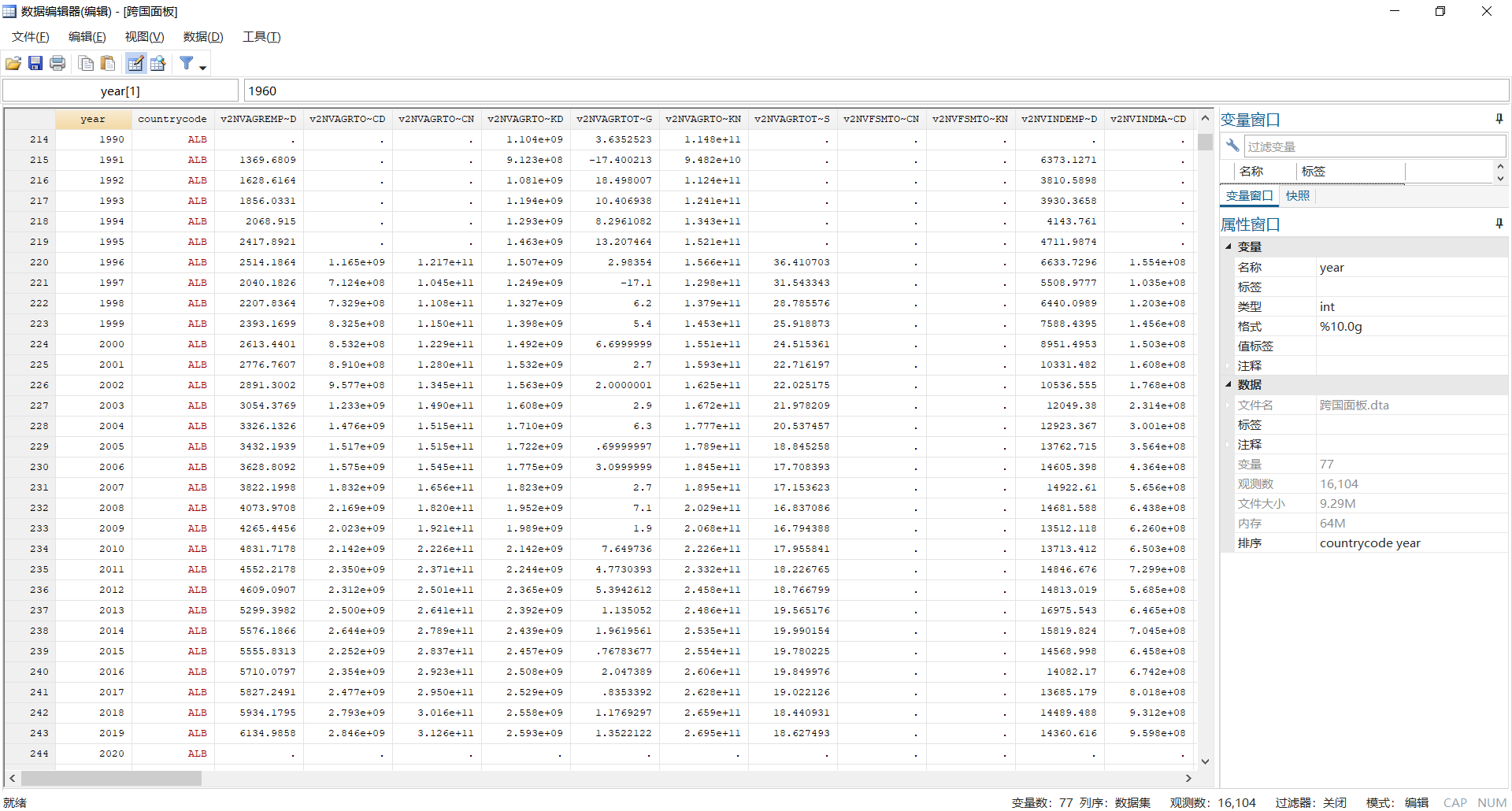 跨国面板十二:农业、制造业、服务业、增加值、通货膨胀、GDP平减指数.dta