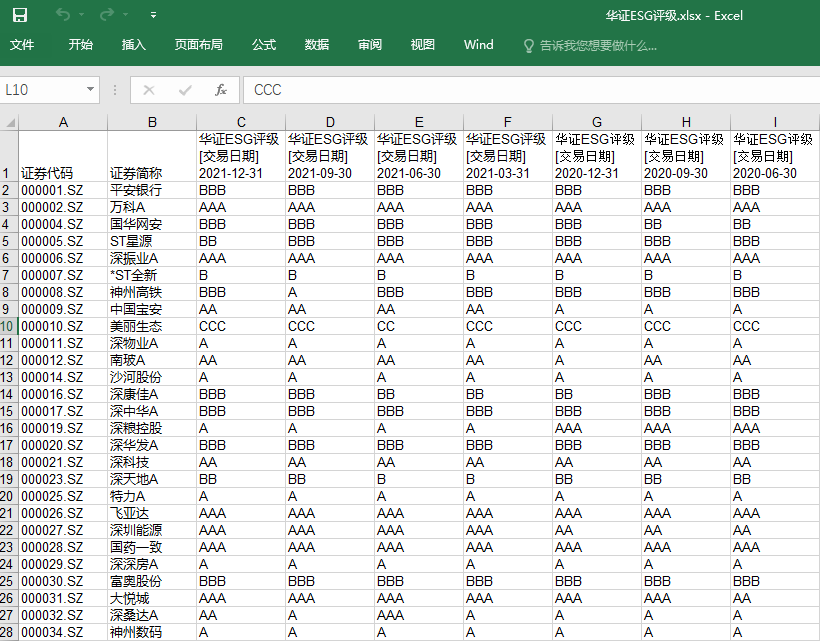 华证ESG的历史数据在不同时间节点下载的结果会发生变动的,我这边会每季度初更新一次。