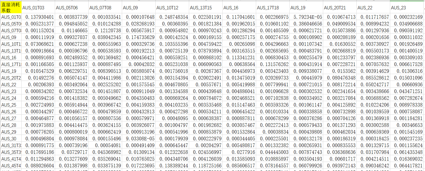 2005-2015年直接消耗系数矩阵A,根据国家间投入产出表(ICIOs)测算得来,