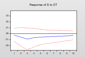 jnutt 发表于 2022-2-11 23:00 如果是横截面数据,回归的结果可以说是,其他条件不变,随着DT增加,S在平均意义上会减小。但这里是时间序 ...