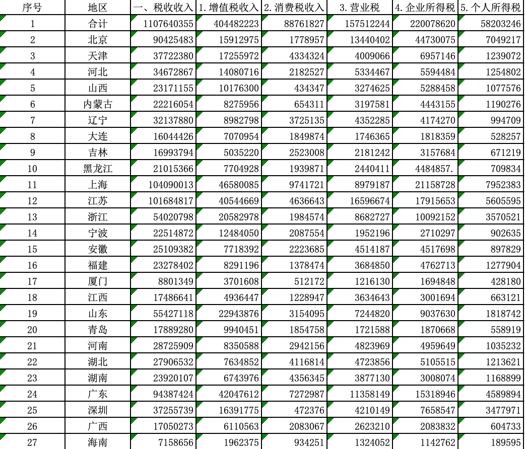 2003-2017分省税收面板数据
