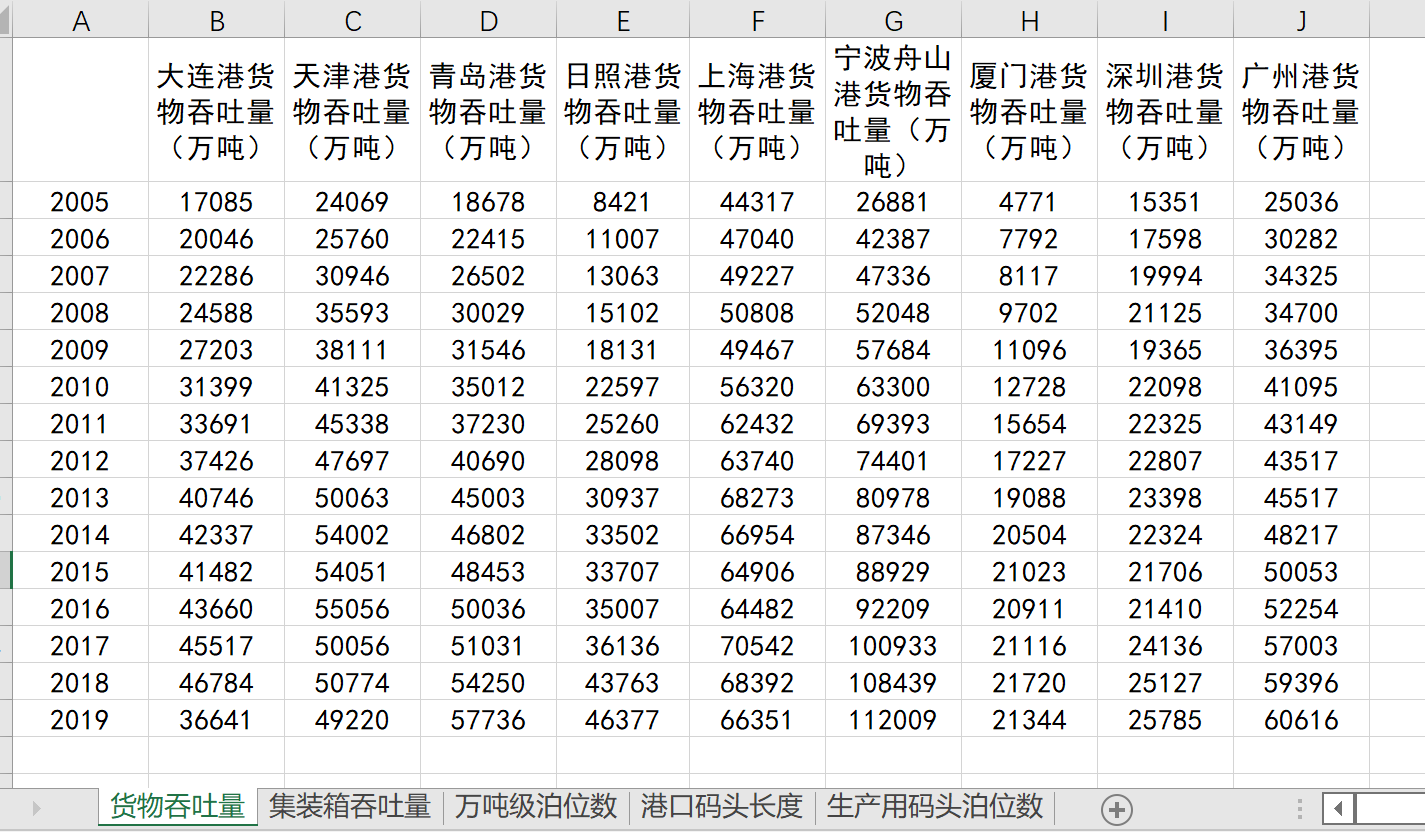 中国九大港口指标数据【2005-2019年】