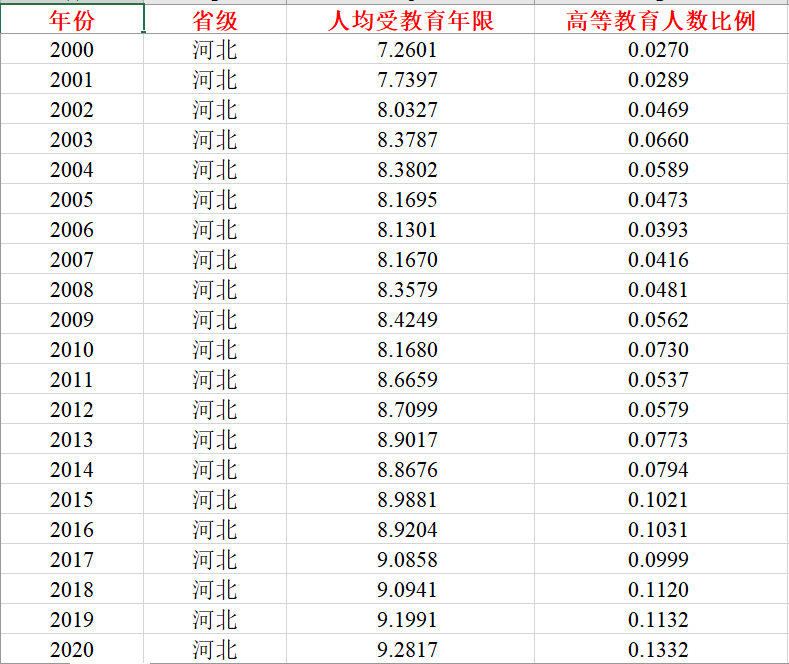 人均受教育年限,高等教育人数比例数据,赠送原始数据