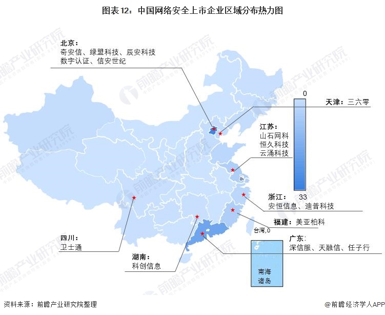 1、区域竞争:北上广企业数量多,广东成网安龙头企业聚集地