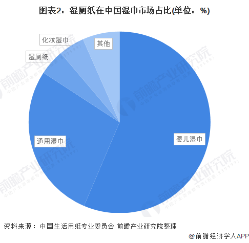 根据中国生活用纸专业委员会统计,目前,湿厕纸在湿巾行业内占比不足5%,远低于婴儿湿巾和通用湿巾,随着湿厕纸市场规模的逐渐增长,其在湿巾市场的占比也将有所提升。