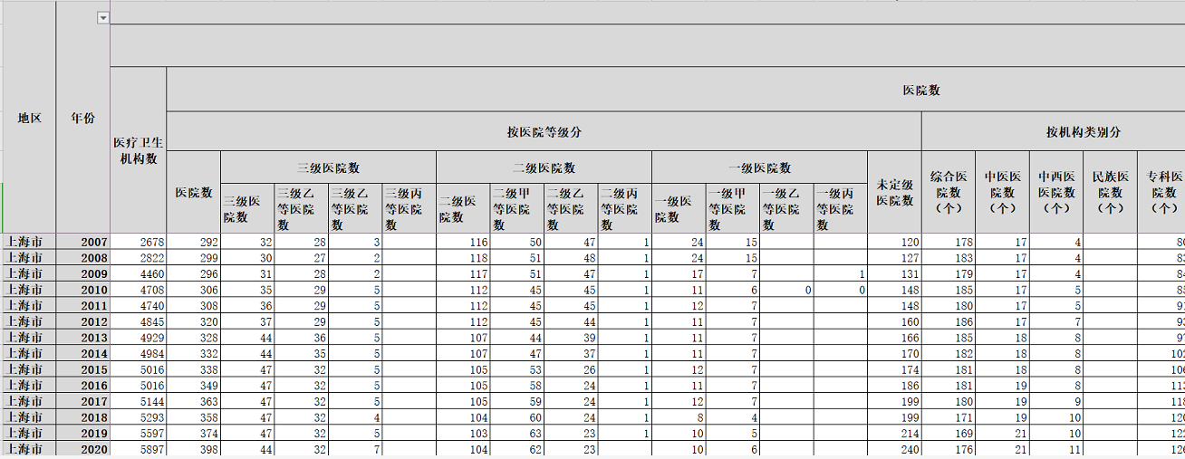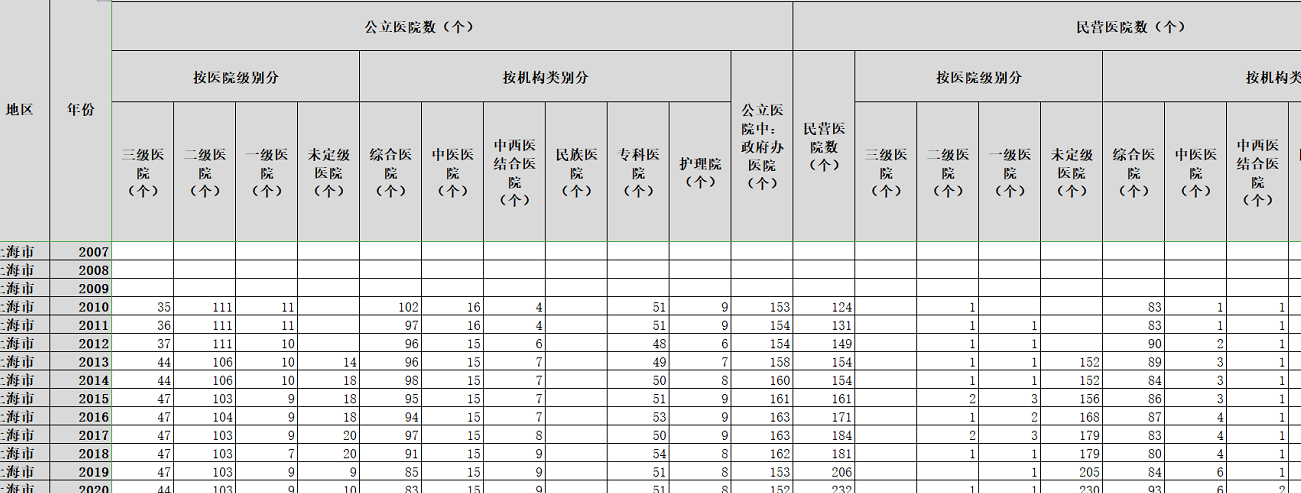 卫生资源指标:机构数、人员数、设施数、床位数等