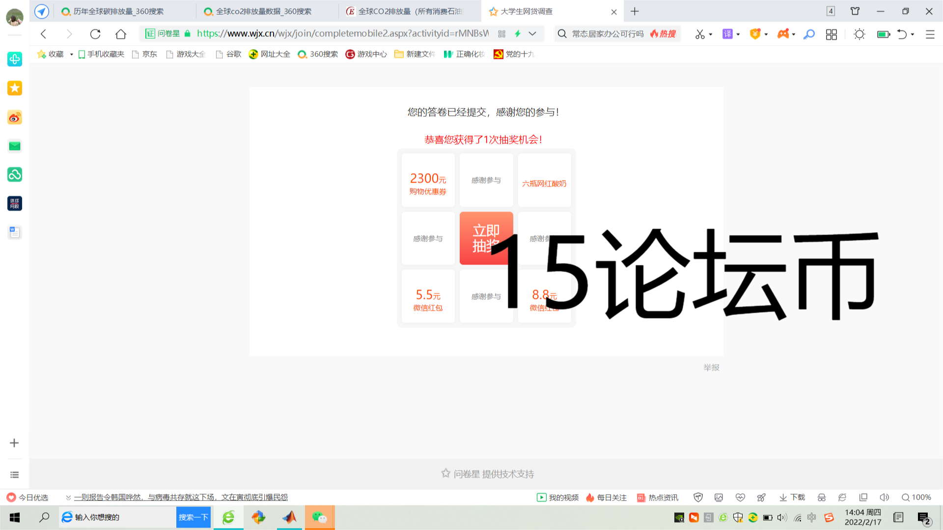 cd13946 发表于 2022-2-16 18:36 链接在这里:https://www.wjx.cn/vm/rMNBsWx.aspx 注:填完请上传截图并标价15个论坛币,我会及时上线购 ...