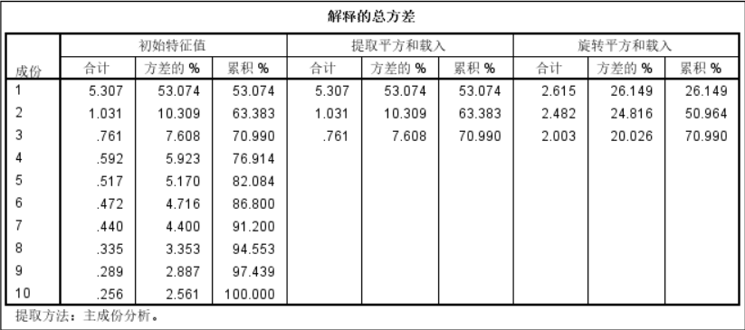 我抽取的三个潜变量因子其中一个因子的特征值小于1,累计贡献率为70,但是KMO值为0.90