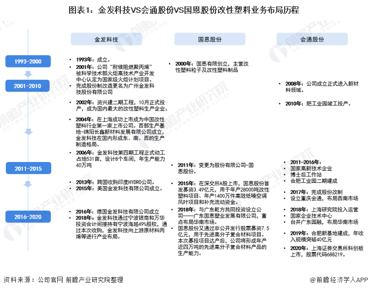 1、金发科技VS国恩股份VS会通股份:改性塑料业务布局历程