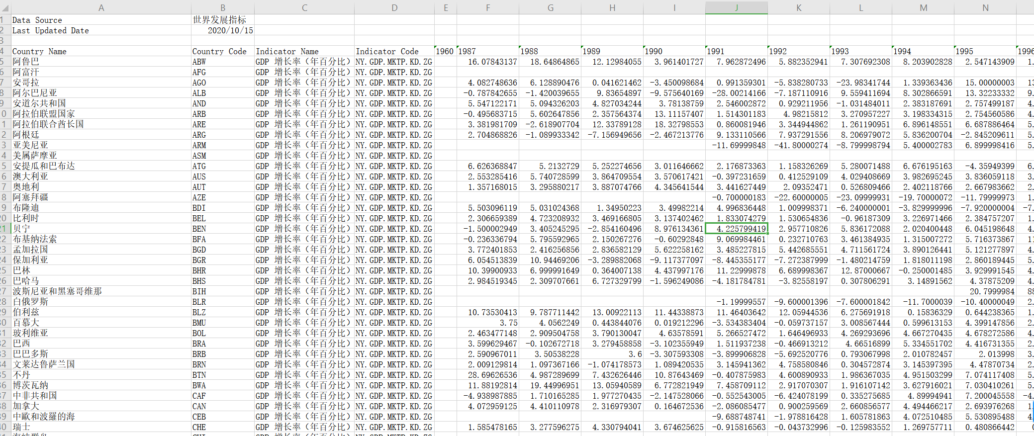 世界各国1960-2019年GDP增长率