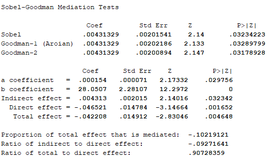 如题,请教各位大神sgmediation中介检验结果如何输出(除了outreg2),要输出第三个板块(如下图)的结果,请问stata的输出命令格式应该是怎样的?谢谢大家!
