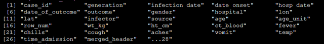 对照上面的标准我们其实就可以知道目前我的原始数据raw的列名中,infection date中出现了空格,date onset . infection date这两个列名的也有空格而且形式应该统一以下比较好;然后…28这个列名有特殊符号,这些最好都先得改改。