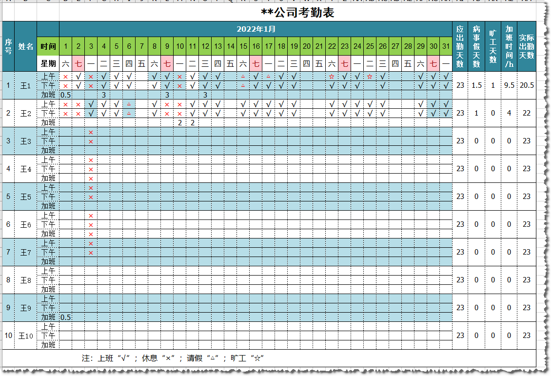 可视化考勤表(自动变换日期).xls