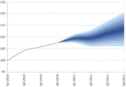 Prospects for 2011 World trade flows are continuing their recovery, building on the large gains of 2010, with slower but still slightly above average growth in 2011. However, recent events in the Middle East and Japan have raised the level of global economic uncertainty and tilted the balance of risk towards the downside. WTO economists’ baseline projections for world merchandise trade in 2011 would see exports grow by 6.5%, with shipments from developed countries increasing by around 4.5% and those from developing economies and the CIS advancing 9.5% (Table 5). These projections include the likely impact of Japan’s earthquake, but if the repercussions turn out to be worse than expected we would have to revisit the forecast in the coming months. Table 5: World merchandise exports and GDP, 2008-2011 a Annual % change ![]() a Figures for 2011 are projections. Source: WTO Secretariat for exports, concensus estimates for GDP. In recognition of the uncertainty surrounding any forecast, the fan chart shown in Chart 6 represents the probabilities associated with this year’s trade growth prediction of 6.5 per cent, based on the experience of past forecasts and taking into account current economic and political conditions. The area covered by the darkest band in the centre of Chart 6 contains the most likely development of trade volumes. The area covered by each pair of identically shaded bands represents another 5 per cent probability of future trade volumes lying within that range. In light of the downside risks mentioned above, the fan chart is slightly skewed towards its lower range. It can be seen, for instance, that even under the worst case scenario portrayed in the chart, trade growth in 2011 would still be positive overall, despite the possibility of a more pronounced dent in the second quarter. Chart 6: Volume of world trade, 2010-11 a Indices, Q1-2010=100 ![]() a Figures for 2011 are projections Source: WTO Secretariat The 14.5% rise in exports in 2010 was quite close to the WTO’s most recent projection of 13.5% released in September. That forecast correctly predicted the growth of developing economies (16.5%) but underestimated the extent of the rebound in developed economies (11.5% compared to the realised figure of 12.9%) The trade forecast assumes world GDP growth of 3.1% at market exchange rates for 2011, with developed economies gaining 2.2% and the rest of the world (including developing economies and the Commonwealth of Independent States) advancing 5.8%. The GDP projection refers to real GDP at market exchange rates based on consensus estimates of economic forecasters. 2 Even though the risks are mostly on the downside, there is also some upside potential if the uncertainly in the Middle East resolves itself soon and if unemployment rates start to come down more quickly in the United States. The latter would release a considerable amount of pent up demand for goods, which would stimulate imports and drive world trade higher. The limited amount of existing research on the consequences of natural disasters for economic growth suggests that even very large disasters generally do not have noticeable effects on output as measured by GDP, especially in the long run. 3 Studies dealing specifically with the trade effects of natural disasters are even rarer. A recent paper by Gassebner, Keck and Teh (2010) 4 examines data on disasters in 170 countries between 1962 and 2004. Using the methodology of this paper, we find that the expected impact of the Japanese earthquake is to: