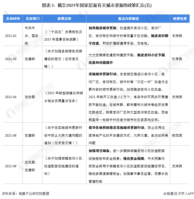 2021年全国两会,城市更新首次被写入政府工作报告;《“十四五”发展规划及2035年愿景目标纲要》中也提出,将实施城市更新行动,推动城市空间结构优化和品质提升,城市更新已升级为国家战略。