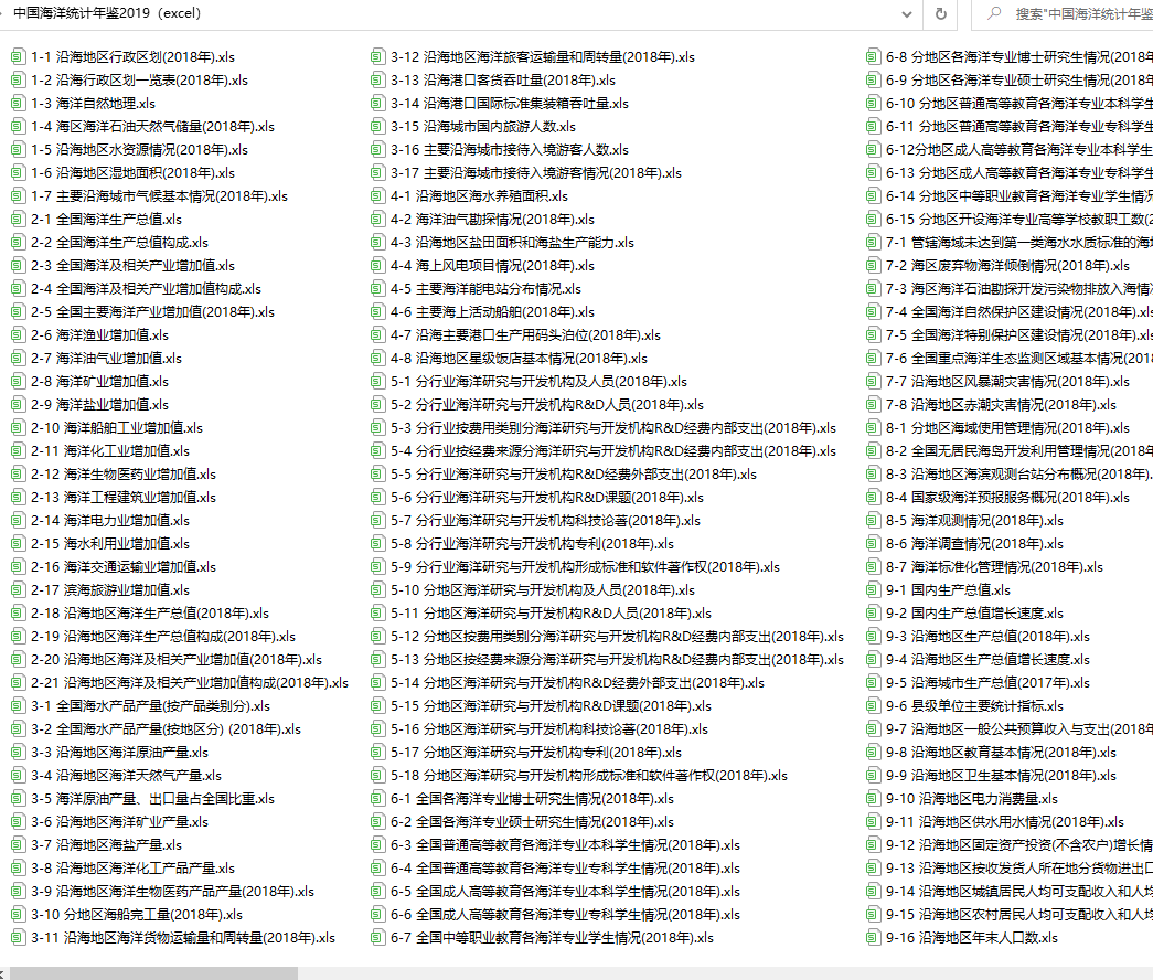 中国海洋统计年鉴2007--2019(excel格式)