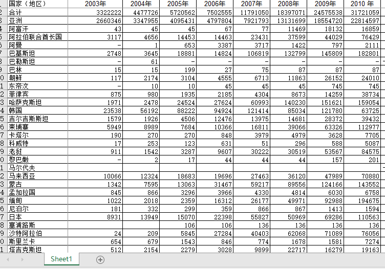 中国对外直接投资存量(分196个国家地区)2003-2020.xlsx